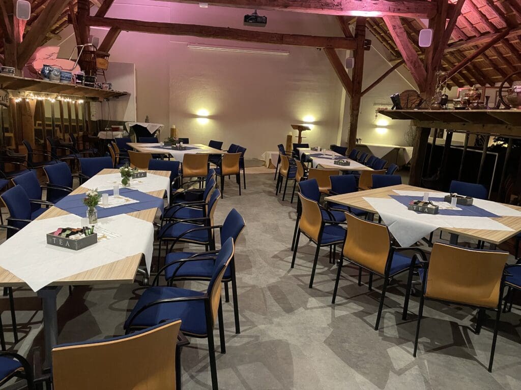 De inrichting van het Theehuis is nostalgisch met een knipoog naar de oude boerenkeuken uit de vijftiger jaren. Daarnaast bieden het terras en de hooiberg een heerlijk verblijf bij mooi weer. De hooiberg kunnen we bij minder mooi weer voorzien van zijwanden zodat het dan toch een comfortabele buitenruimte is.